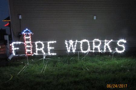 Fireworks Sign. Letters are 12" tall, 2 pieces, includes cord to allow 1 plug for extension cord.
